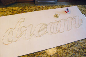 يعتبر هذا الاسلوب من الأساليب اليدوية المستخدمة في إنتاج صور طبيعية أو تصميمات بسيطة من خلال ربط مجموعة من الخيوط أو الأسلاك بواسطة مسامير مثبتة على لوح خشبي، ويمكن استخدام فن الفيلوغرافيا لتصوير رموز، كلمات، أو أشكالًا طبيعية، حيث يتم تجهيز التصميم المراد تنفيذه صورة  (أ)، ثم تثبيت التصميم على لوح خشب، بعدها يتم تخطيط التوزيع لنقاط تثبيت المسامير على التصميم الموجود على لوح الخشب بحسب ما يراه المصمم صورة  (ب)، ثم تترك المسامير وينزع الشريط اللاصق وكذلك ورق التصميم، بعدها يبدأ إظهار الشكل المراد بشد الخيط الملون من مسمار إلى آخر وفق رؤية المصمم، وتتم الشد والتعبئة باستخدام خيط واحد، أو خيطين بلونين مختلفين، أو بخيوط متعددة الألوان والوصول للشكل النهائي كما في صورة  (ج)، وبذلك نحصل على أعمالًا تتميز بالجمال، وغالبًا تكون التصميمات من الحروف والخطوط الجمالية.